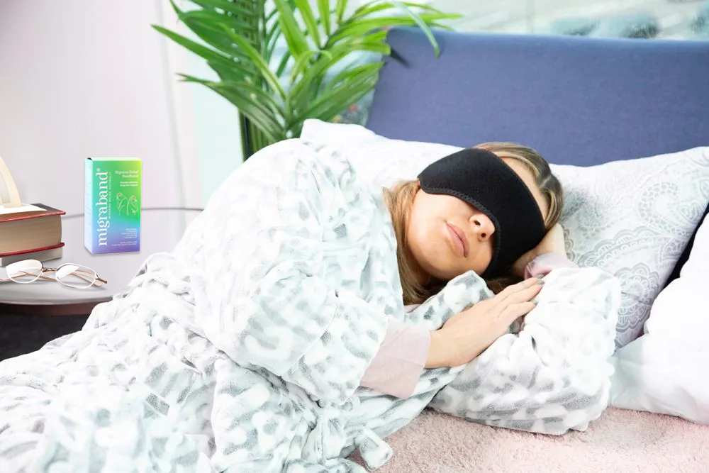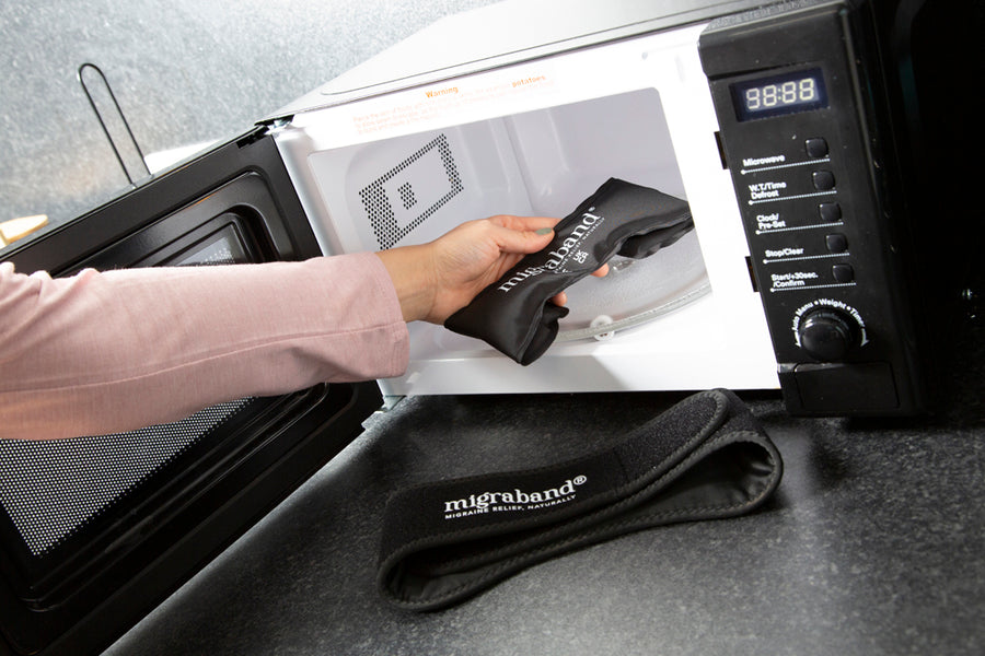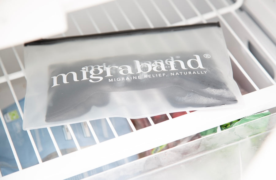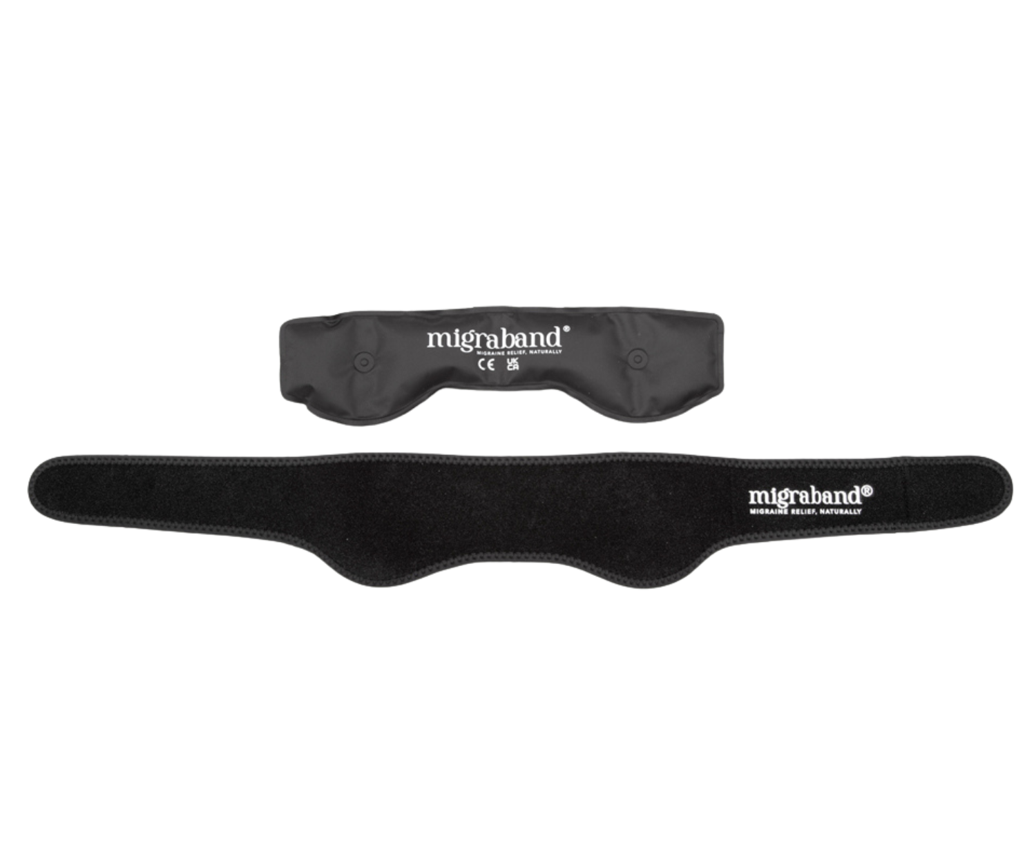 Migraband is a compression headband that comes with a gel pack. The pack can be heated or frozen. It can be worn over the eyes or around the head.